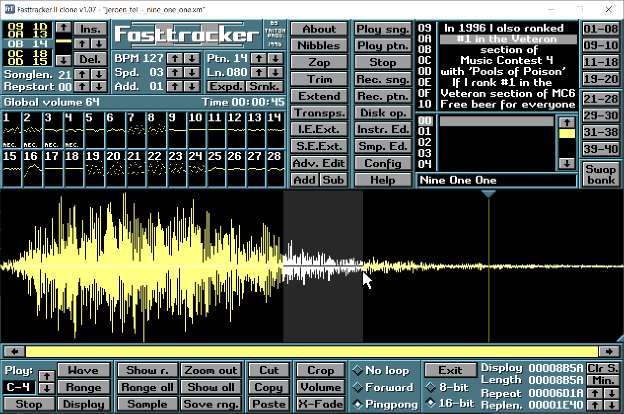 Fasttracker II clone for Windows/macOS/Linux
