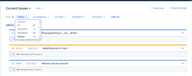 I used codacy for checking my code quality. and the results are as following.
