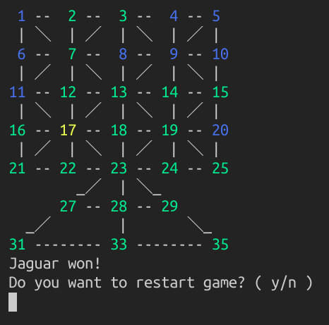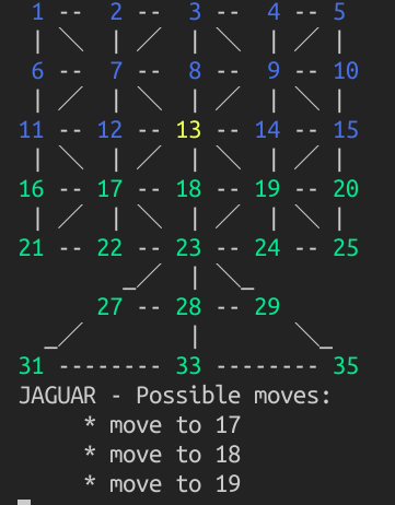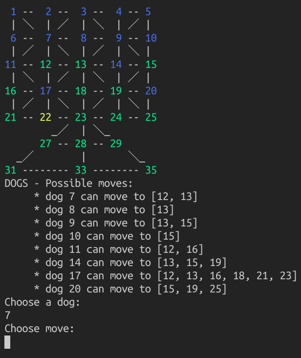 Adugo Implemenattion of Adugo, a two-player abstract strategy game. Game beggining Dogs move Game ending