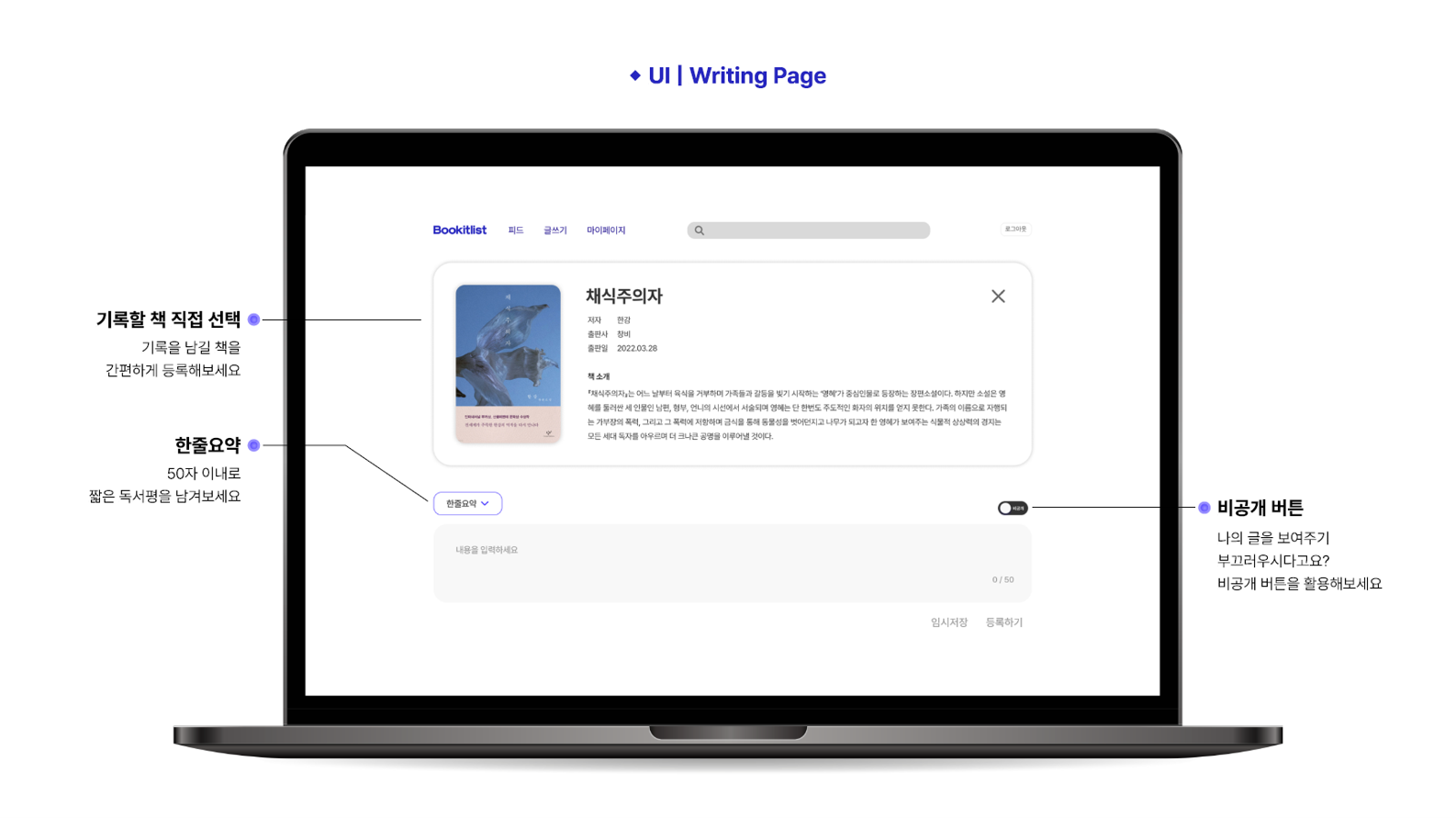 읽은 책에 대한 기록을 간편하지만 즐겁게 남길 수 있도록 Bookitlist 가 도와드릴게요