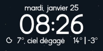 The widget offers a sleek and easy-to-read design, featuring information about the date, time, and current weather conditions.