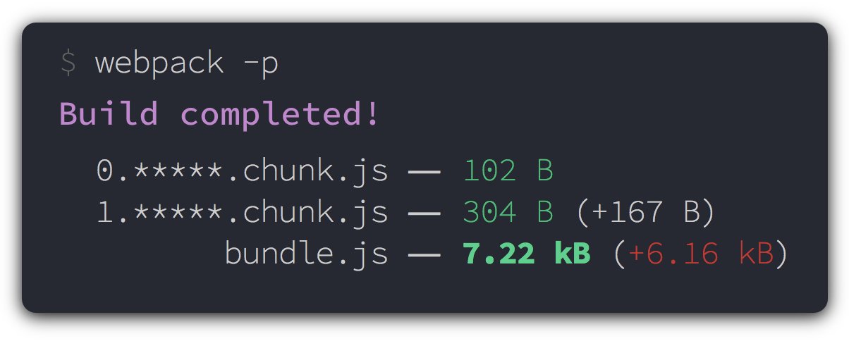 Prints the gzipped sizes of your webpack assets and the changes since the last build.