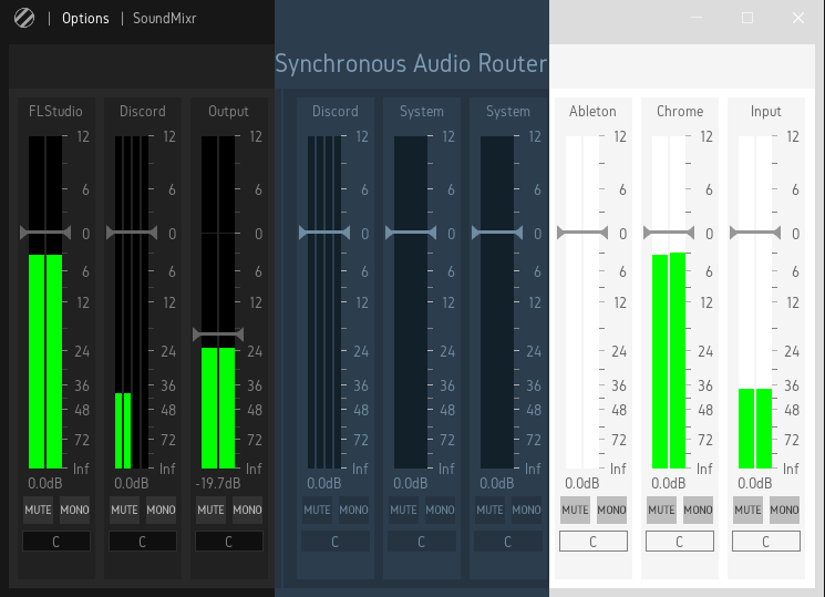 SoundMixr is a simple audio mixer for ASIO devices, but specifically made for SAR (http://sar.audio/), it sees all the channels in the ASIO device and shows them with the option to route any input to any output. You can also split any channel into mono channels, or combine them to make channels with as many lines as you like. Each channel also has a mute, mono, stereo pan and volume parameter. Each channel has its own effects chain in which you can add effects. You have the ability to bypass effects and rearrange them by dragging them to a new position in the chain.