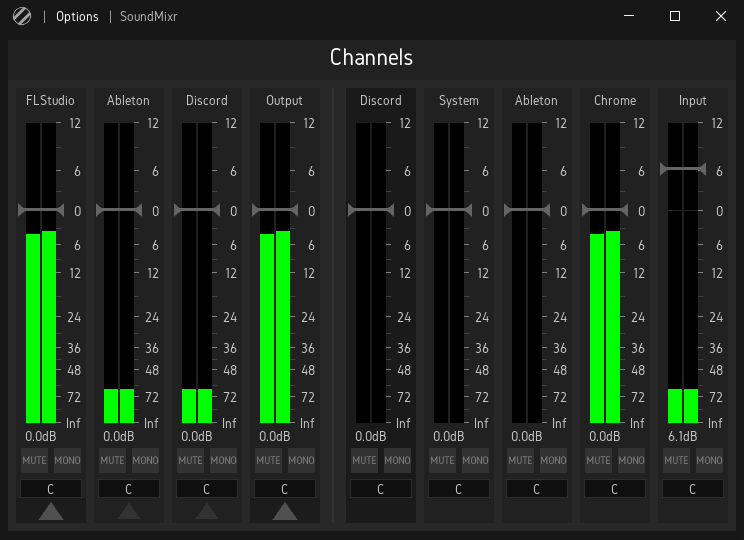 SoundMixr is a simple audio mixer for ASIO devices, but specifically made for SAR (http://sar.audio/), it sees all the channels in the ASIO device and shows them with the option to route any input to any output. You can also split any channel into mono channels, or combine them to make channels with as many lines as you like. Each channel also has a mute, mono, stereo pan and volume parameter. Each channel has its own effects chain in which you can add effects. You have the ability to bypass effects and rearrange them by dragging them to a new position in the chain. You can save/load presets for effects, and even for an entire effect chain. Connect with midi devices and link a Midi CC to any parameter in SoundMixr. Open the Soundboard to load up to 16 files. You can play the files using a midi link, or a hotkey. The Soundboard currently only supports WAV files.