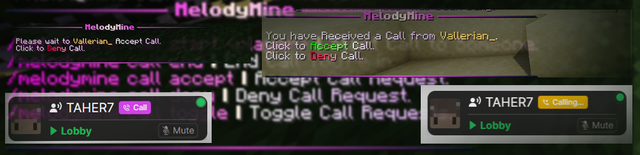 /melodymine call start <player>to call other players.