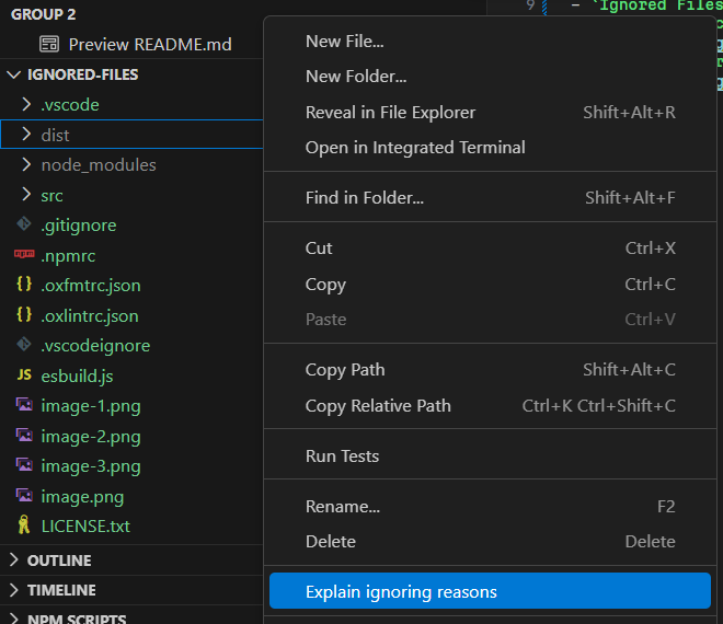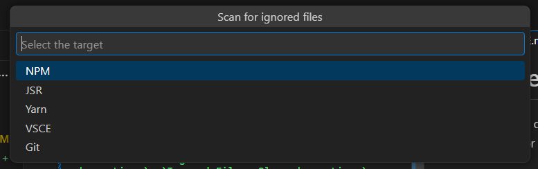 Show files and directories ignored/included by Git, NPM, Yarn, JSR, VSCE or other tools.