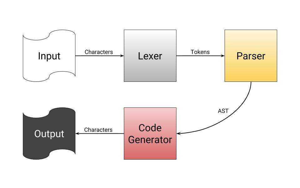 With these two components, we have a functional compiler that interprets our own language with Python. However, it still doesn’t create a machine language code and is not well optimized. To do this, we’ll need the most complex part of the compiler, code generation with LLVM.