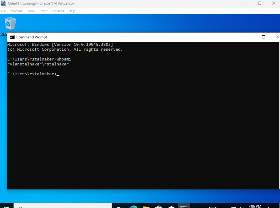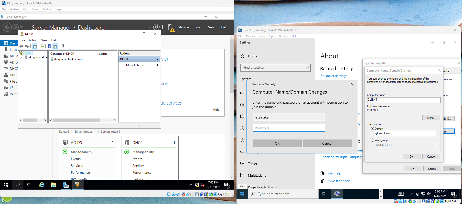 - Changed the client name to CLIENT1 and joined it to the rylanstalnaker.com domain.