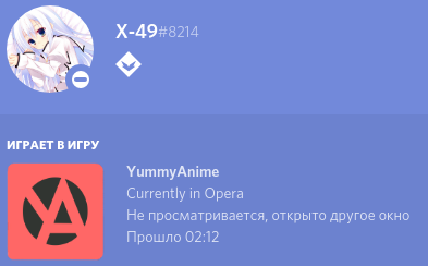 node index.jsГотово, теперь то что вы смотрите на сайте, отображается у вас в Discord, если вы свернули или открыли другое окно, оно так же будет указано в статусе (только название приложения :))