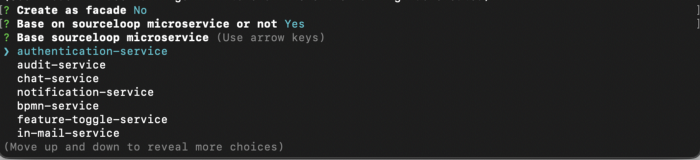 - Prompt #3 – Select which Sourceloop microservice you want from the list if "Yes" was selected in the previous prompt.