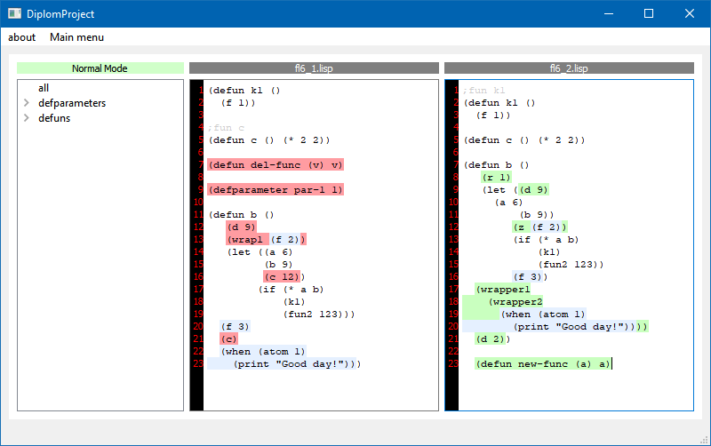 It is a project of lisp semantic diff. It was started as the main part of my bachelor's diploma project.