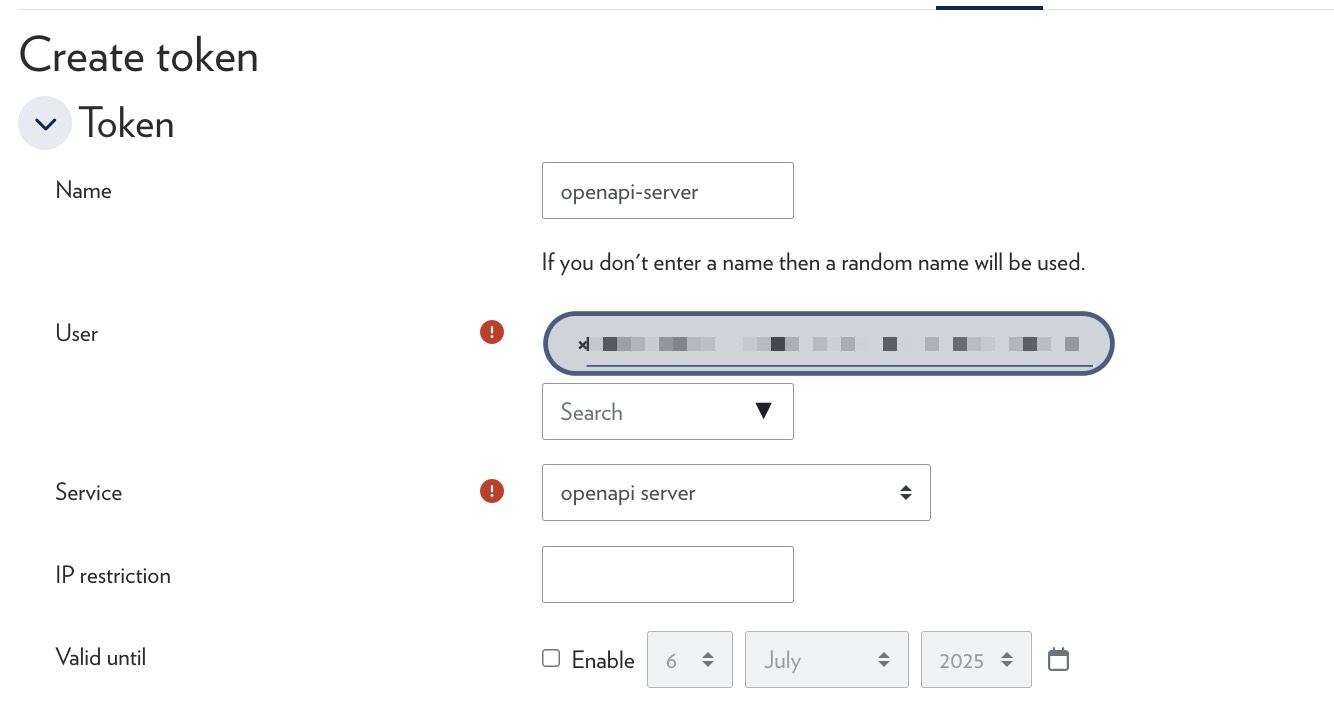 First you need to be an admin and create an external service. name it openapi-server. only allow certain authenticated users to create ws tokens.