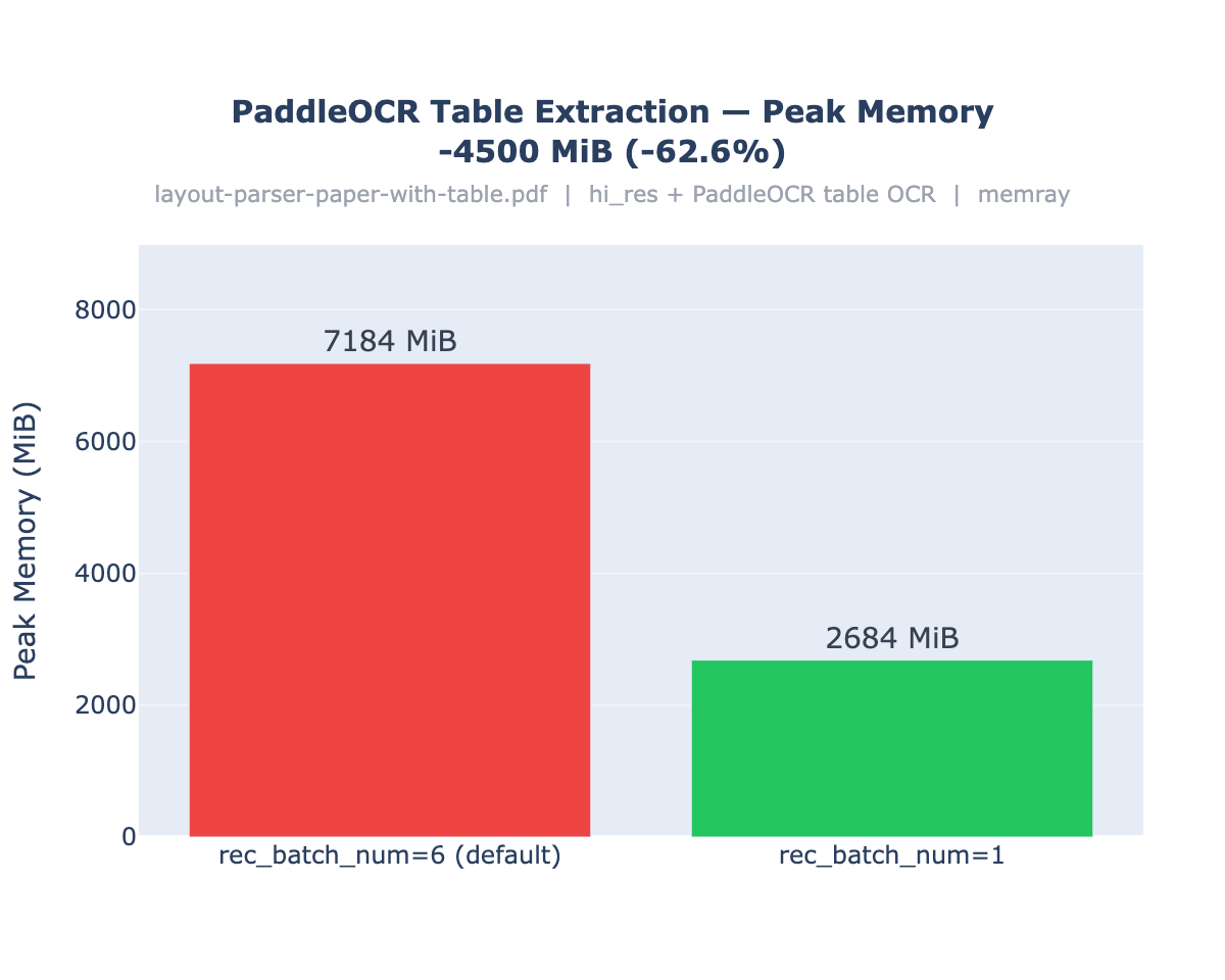 memray runonlayout-parser-paper-with-table.pdfthroughpartition()with hi_res + PaddleOCR table OCR. On CPU, batch processing doesn't parallelize — it's sequential withinpredictor.run(). Smaller batches just allocate less workspace memory.Reproduce