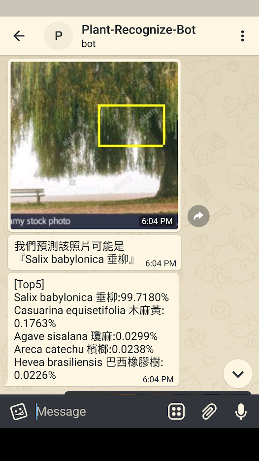 Designed an easy-to-use chatbot on Telegram for users to upload photos of plants and get instant boxing and predicted category result.