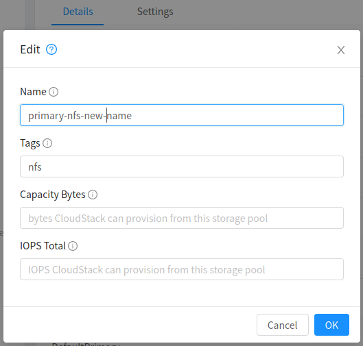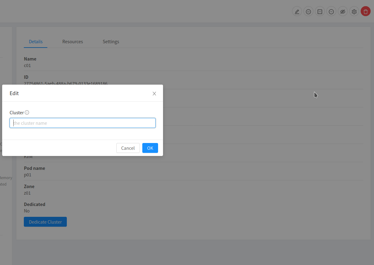 updateHost,updateCluster, andupdateStoragePoolallow updating the respective resource name.This PR adds support for such edit buttons on CloudStack primate.