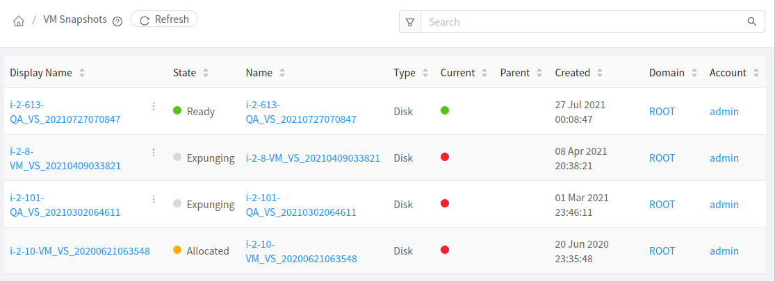 Now shows the value of current in vmsnapshot listview