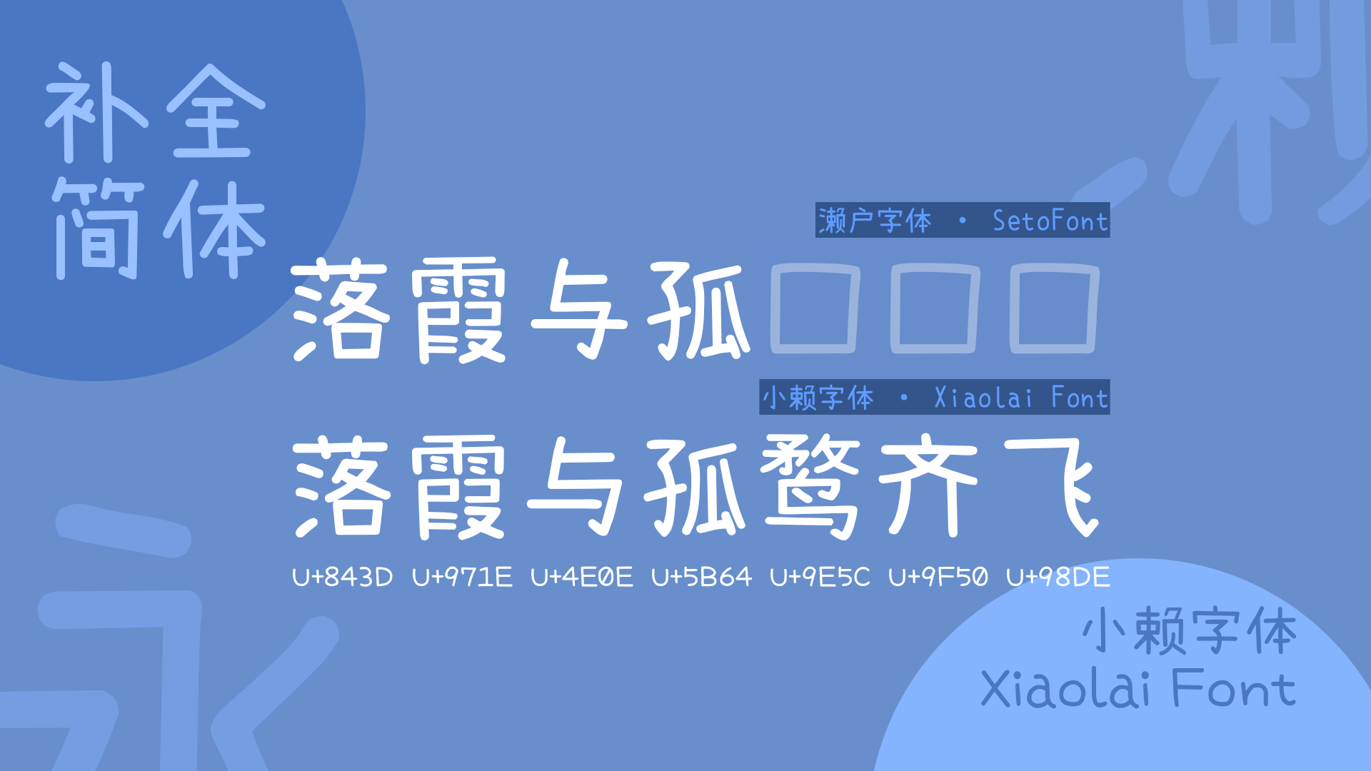 于是,本人开启了 “濑户内海字体简体补全计划” ,旨在补足 濑户字体 和 内海字体 缺少的简体字。 小赖字体 是这一计划的延续。