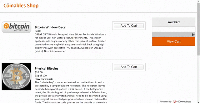 Simple Bitcoin Shopping Cart No Node