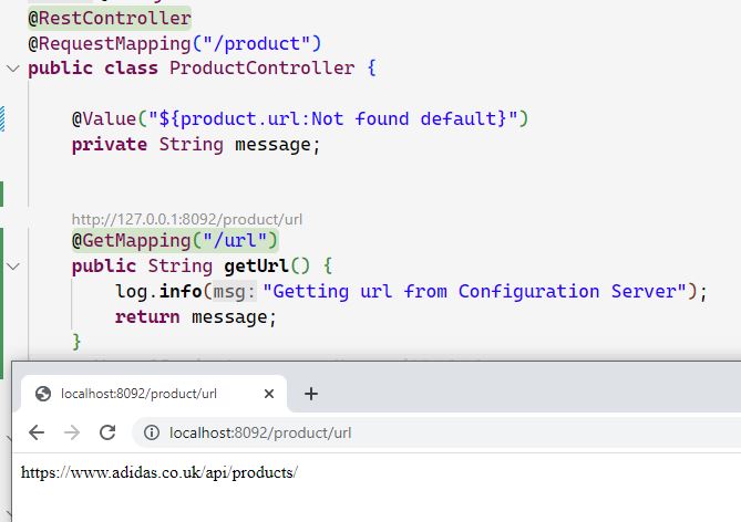 import: optional:configserver:http://localhost:8888/We can retrieve them: