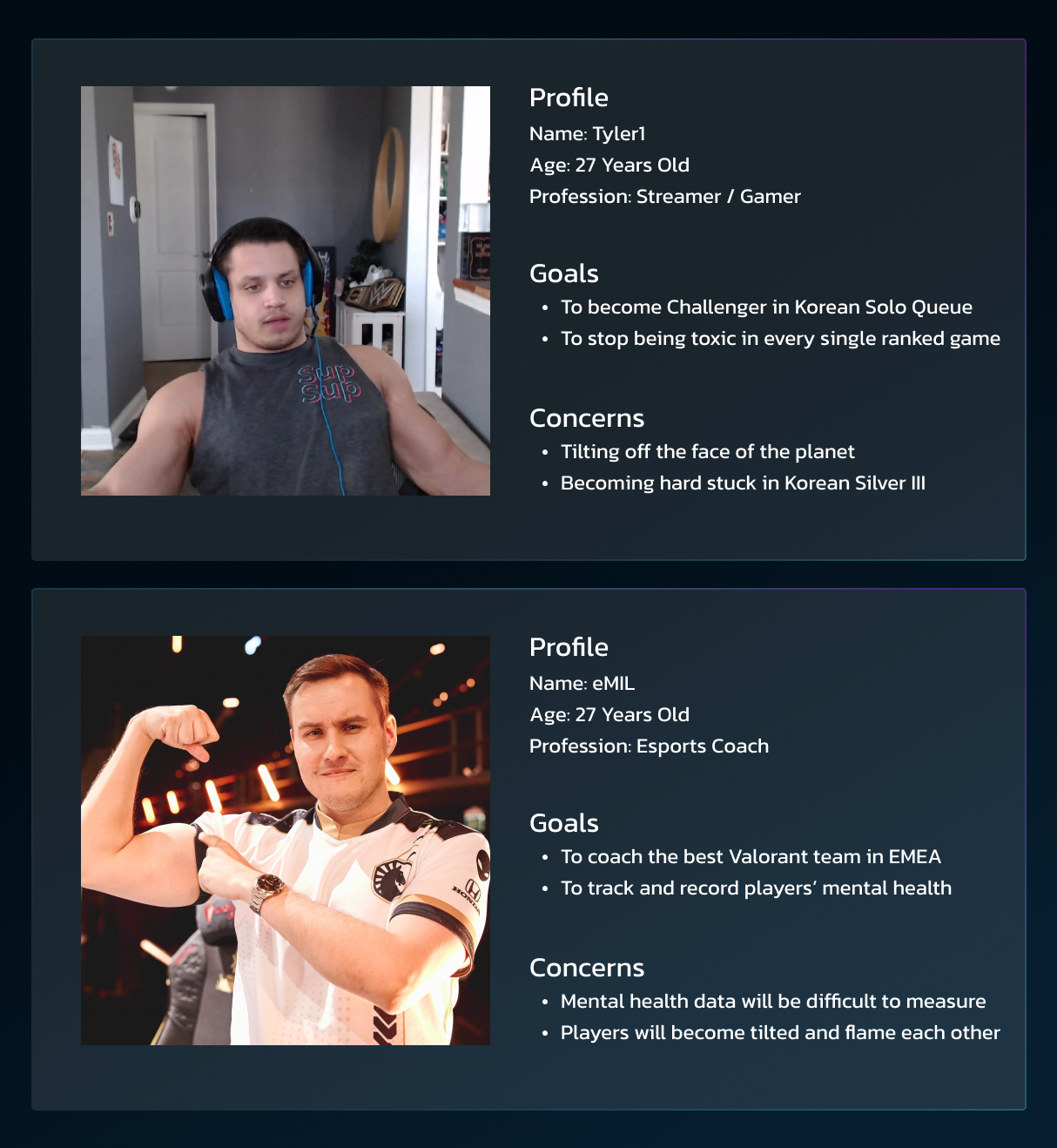 Tiltproof combines data visualization tools and a scoring algorithm to generate a dashboard allowing gamers and their coaches to track their mental wellbeing.