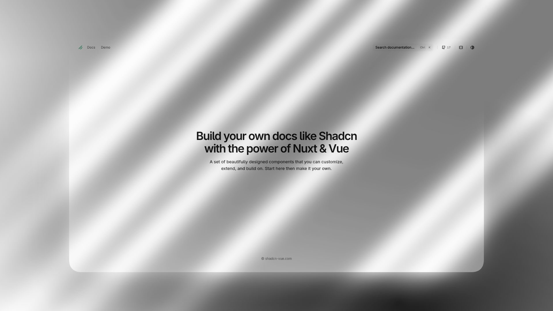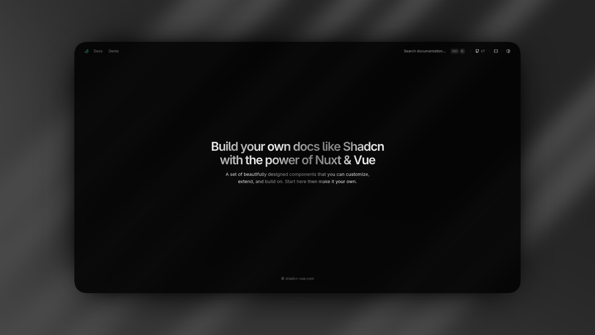 A production-ready documentation template built with Nuxt 4.4 and shadcn-vue. Engineered for speed, clarity, and developer sanity.