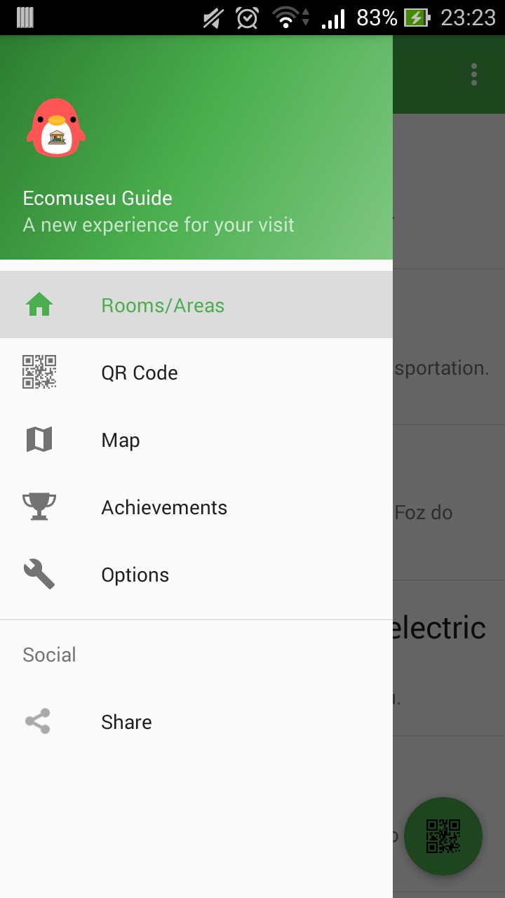 - Achievements for each area that the user visit (to unlock the achievement, only by reading a QR Code of area)