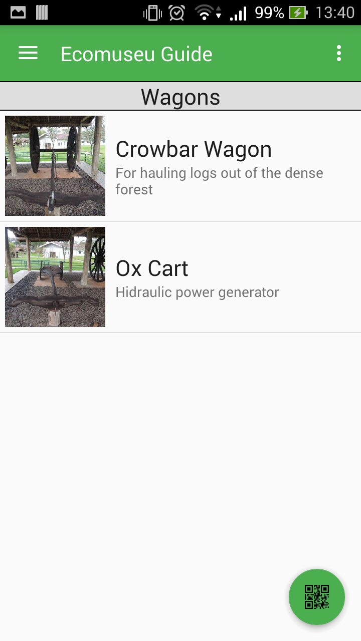 - Leitor de QR Code (zxing-android-embedded, baseado no ZXing Barcode Scanner do Google) para rapido acesso a exposição (cada exposição do museu terá um QR Code)