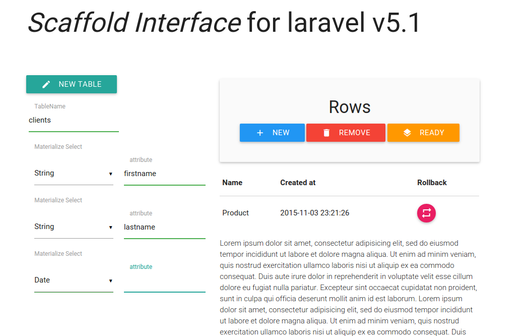 Scaffold Interface for laravel v5.1 it's simple and useful