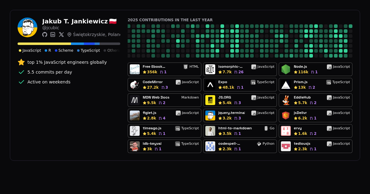 I'm Jakub T. Jankiewicz, and I'm a Web Developer from Poland, right now looking for a remote job with ReactJS/React Native and TypeScript.