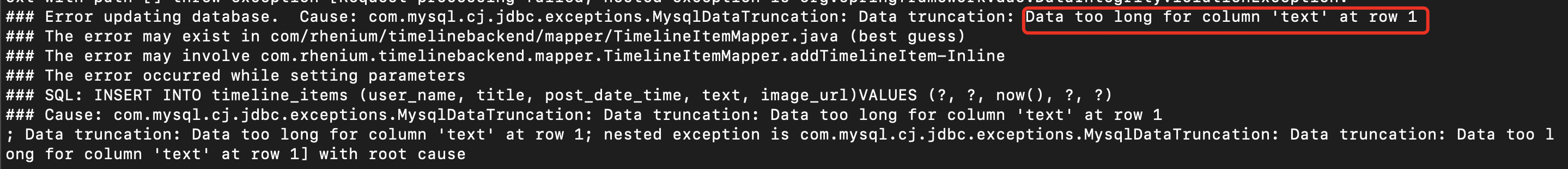 当我们尝试传入一个较长的文本,我们会发现上传失败: