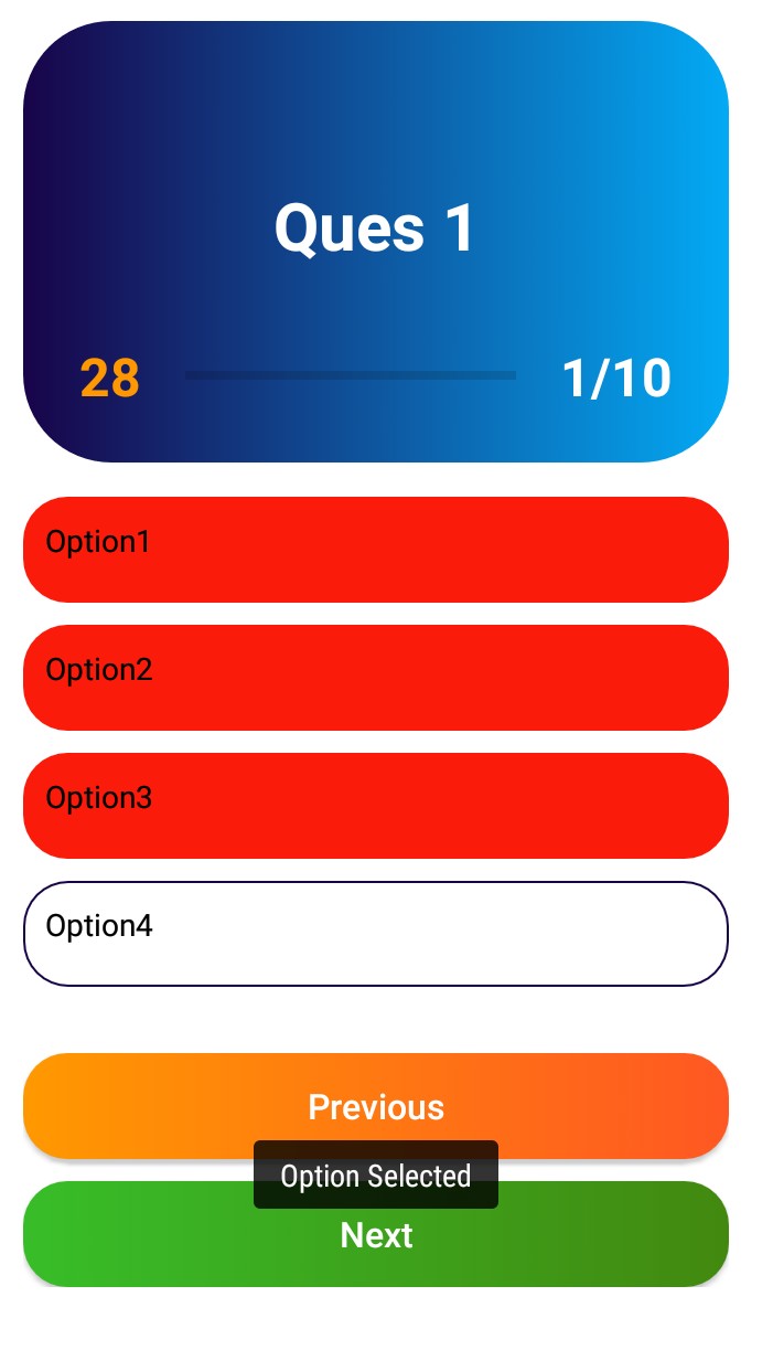 **Fixing correct and wrong answer** When clicking the option it shows every option as wrong ** Step to reproduce - login to the app - select quiz category - select options **Expected behavior** On clicking the option - [ ] if it's right it should show green button - [ ] If wrong it should show red button and also correct answer and move to next next question. **Screenshots**