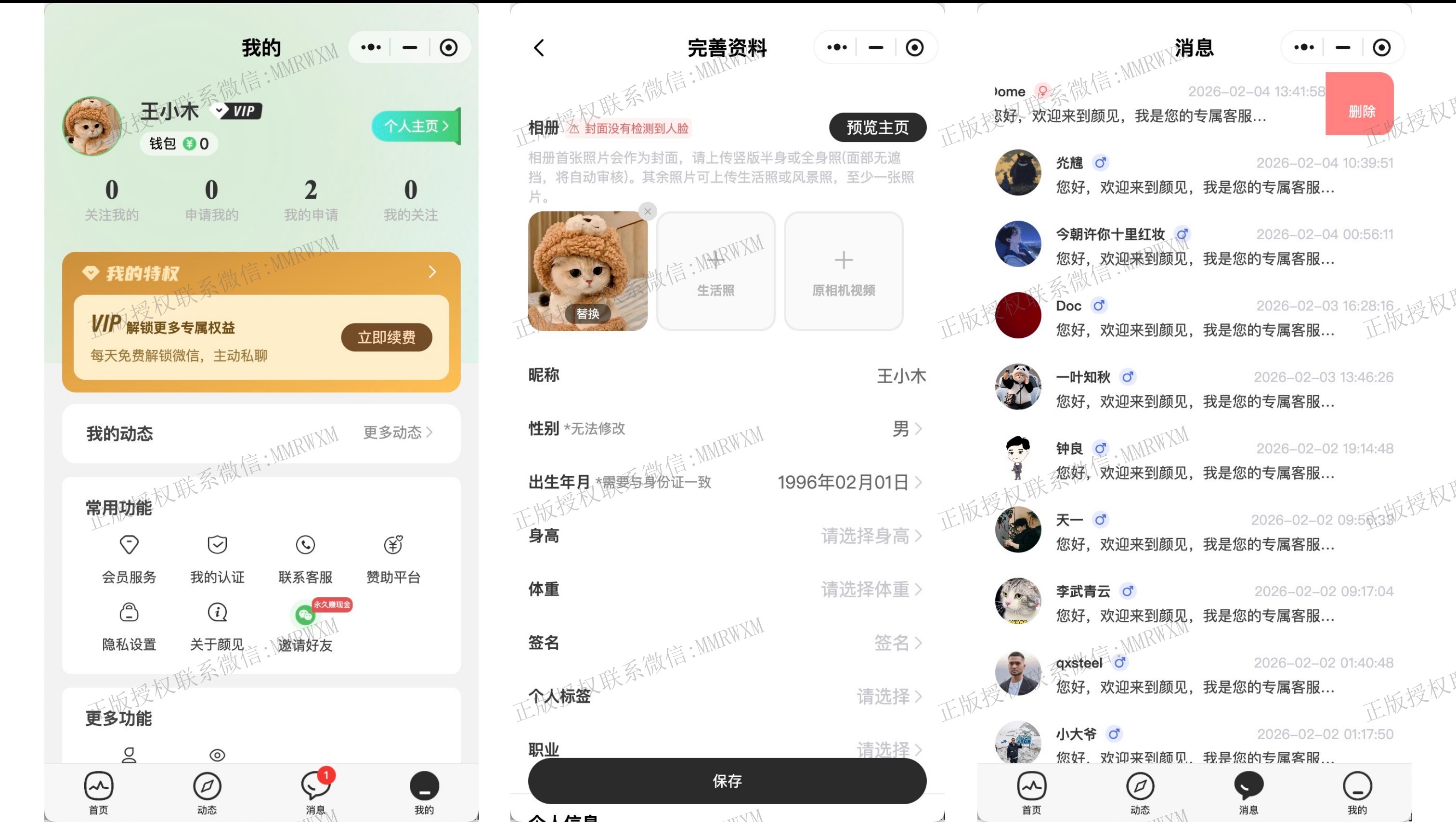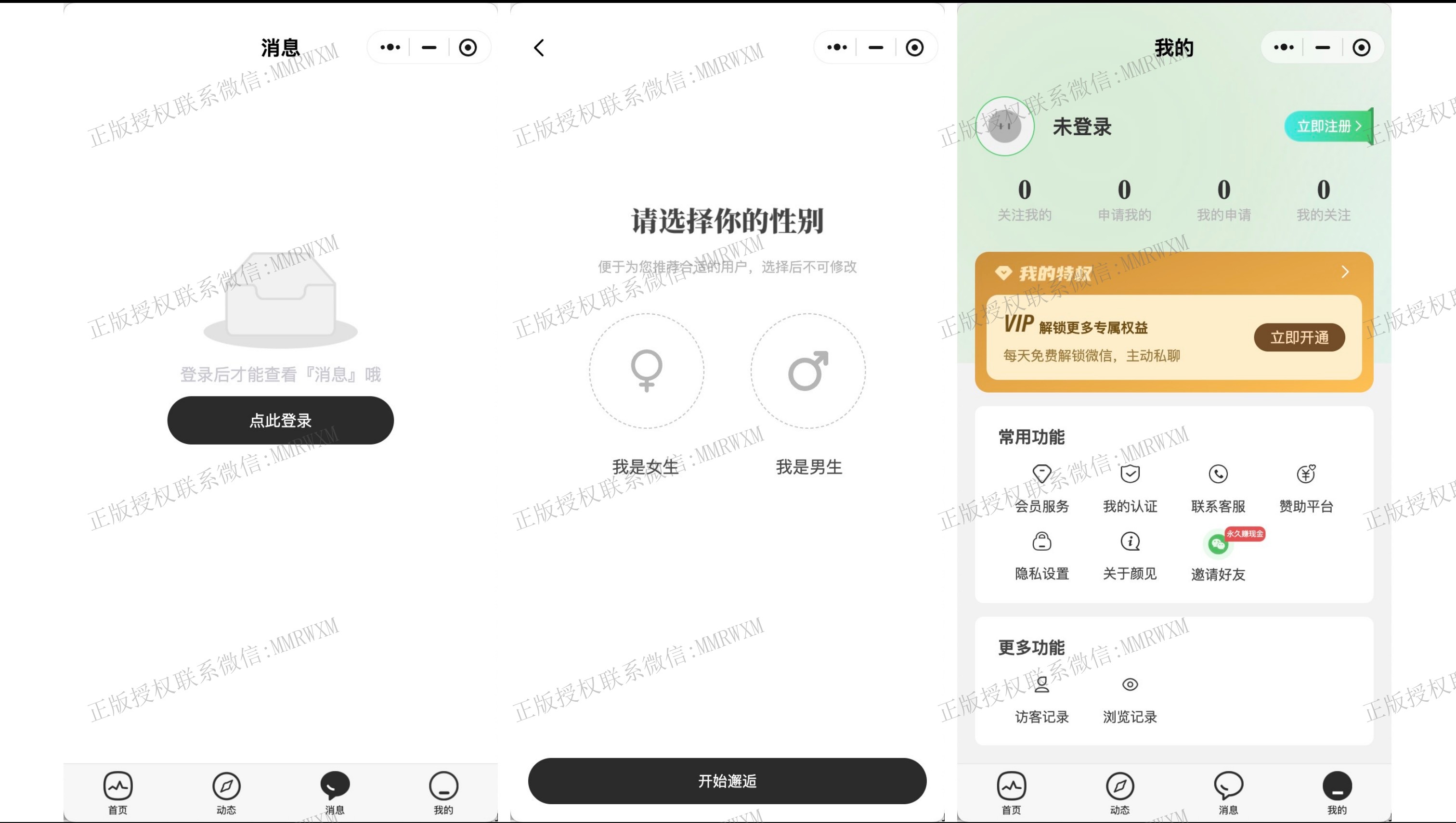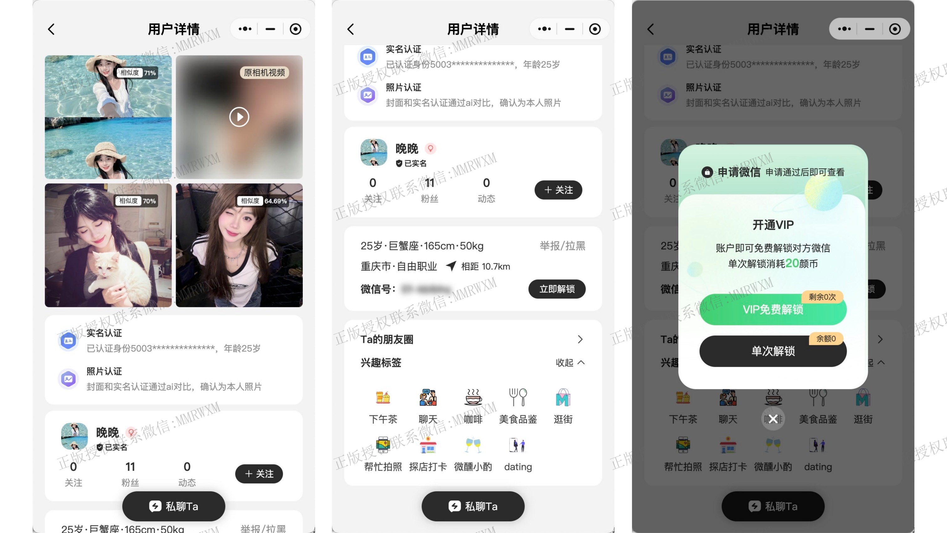 - 申请私信: 用户单次付费或者vip免费解锁私信,解锁后可以向对方发送平台im消息