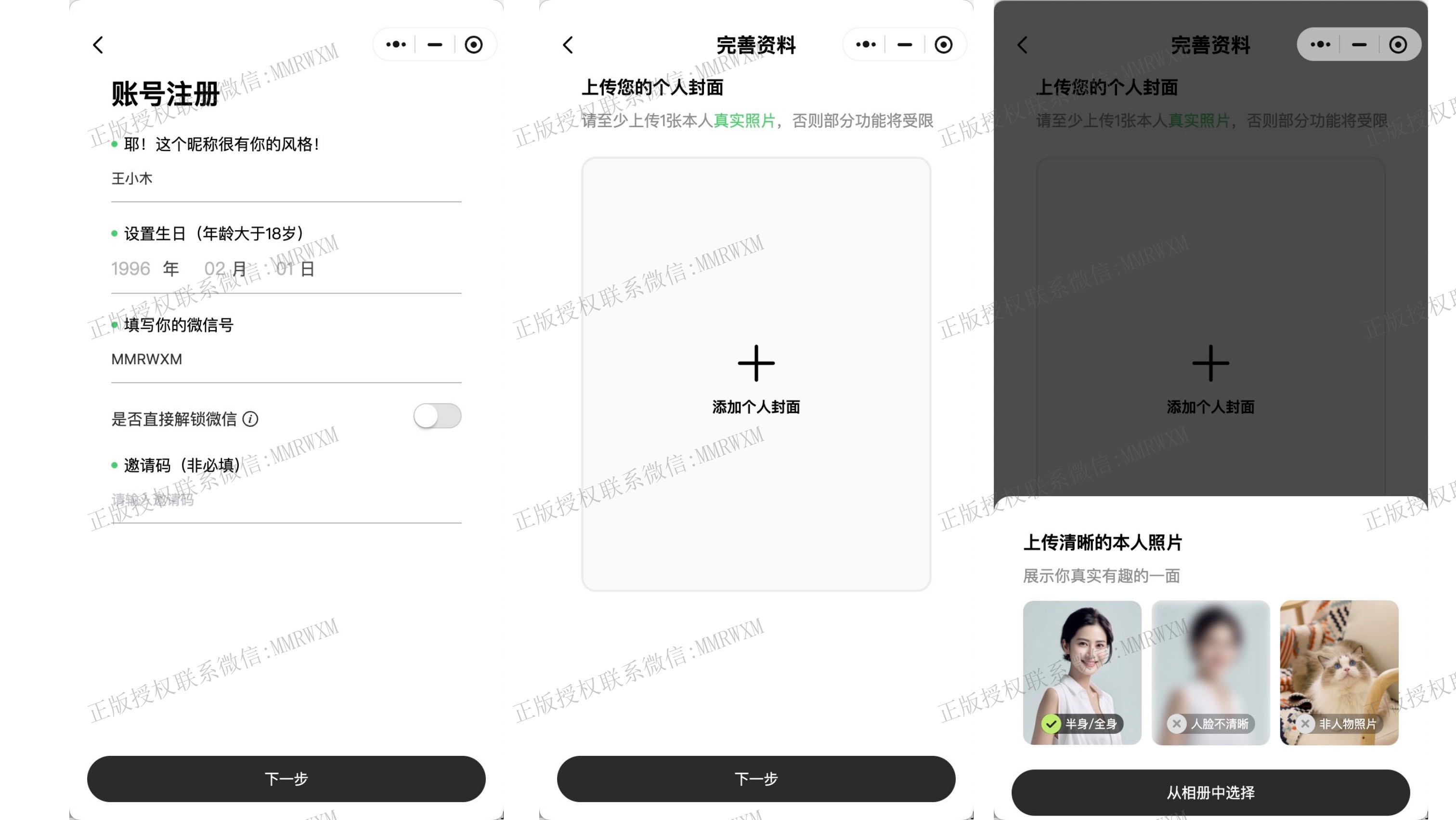 - 用户信息完善: 用户注册完成后,可以完善自己资料信息,上传相册