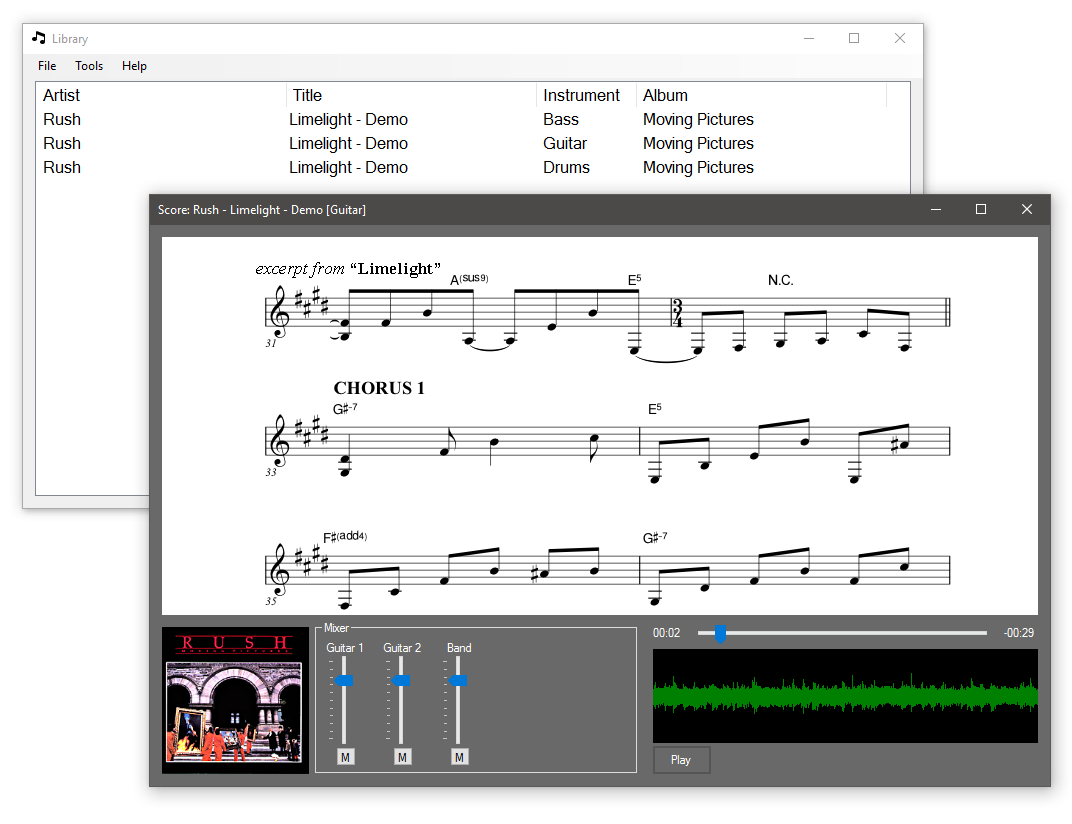 - Added sheet music selection (score/tablature/part)