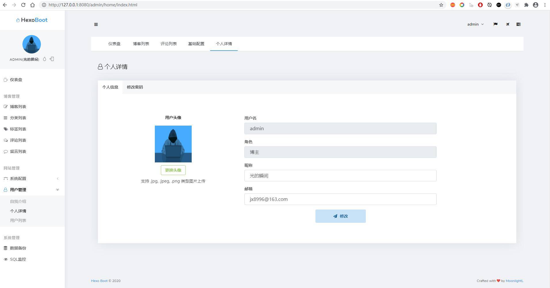 Hexo Boot 是基于 Spring Boot + MySQL 开发的一套开源的博客系统。前身是 ml-blog 博客系统,在此基础上演变和扩展而来。