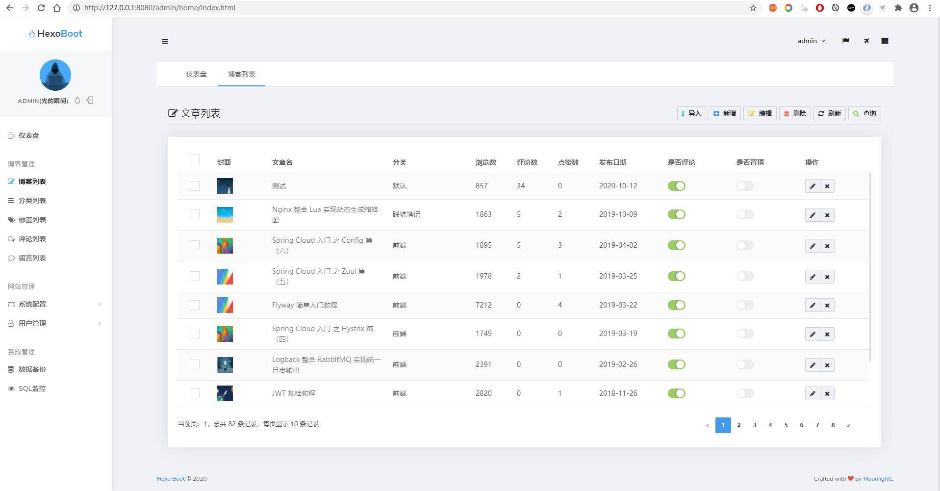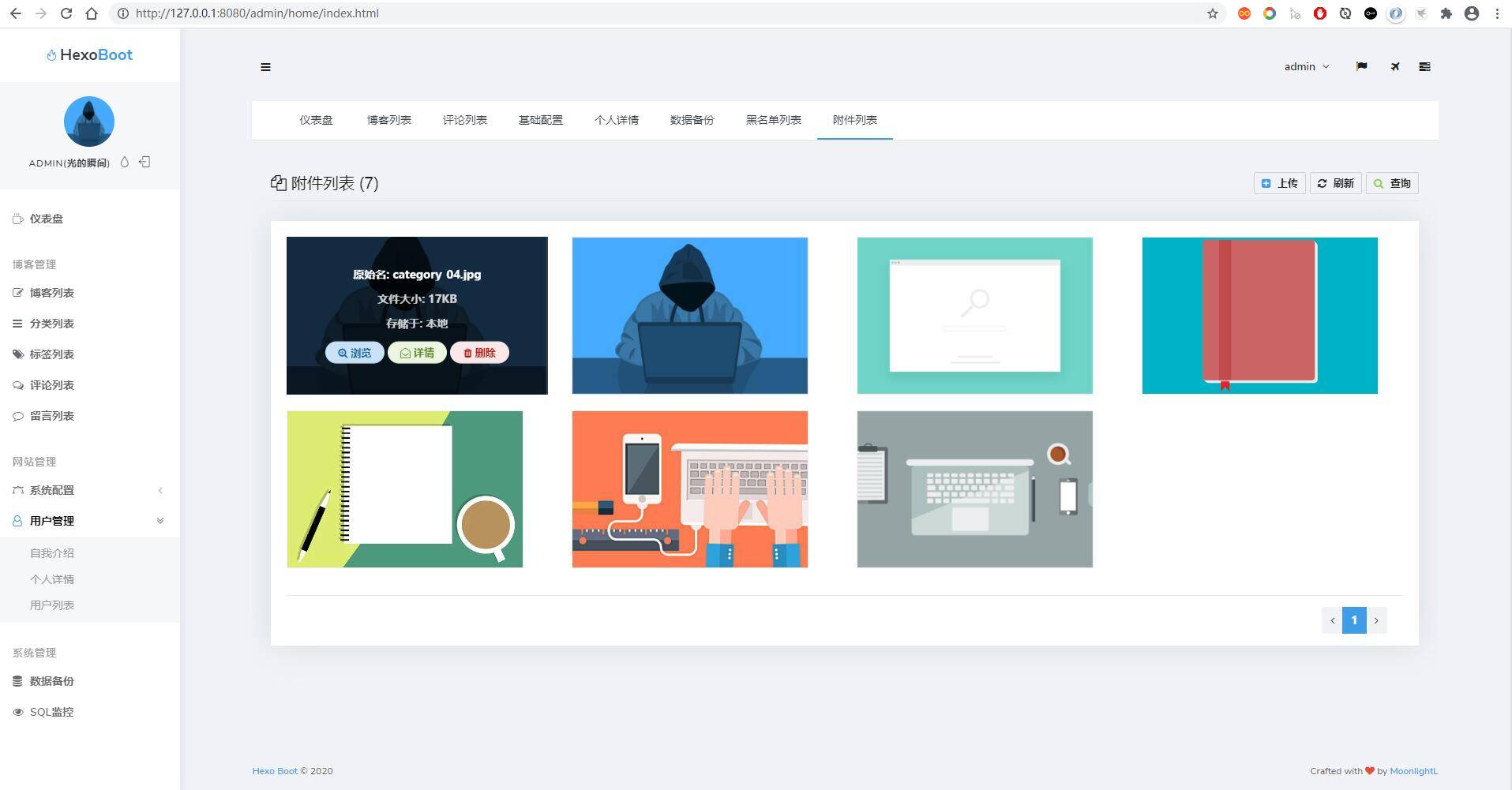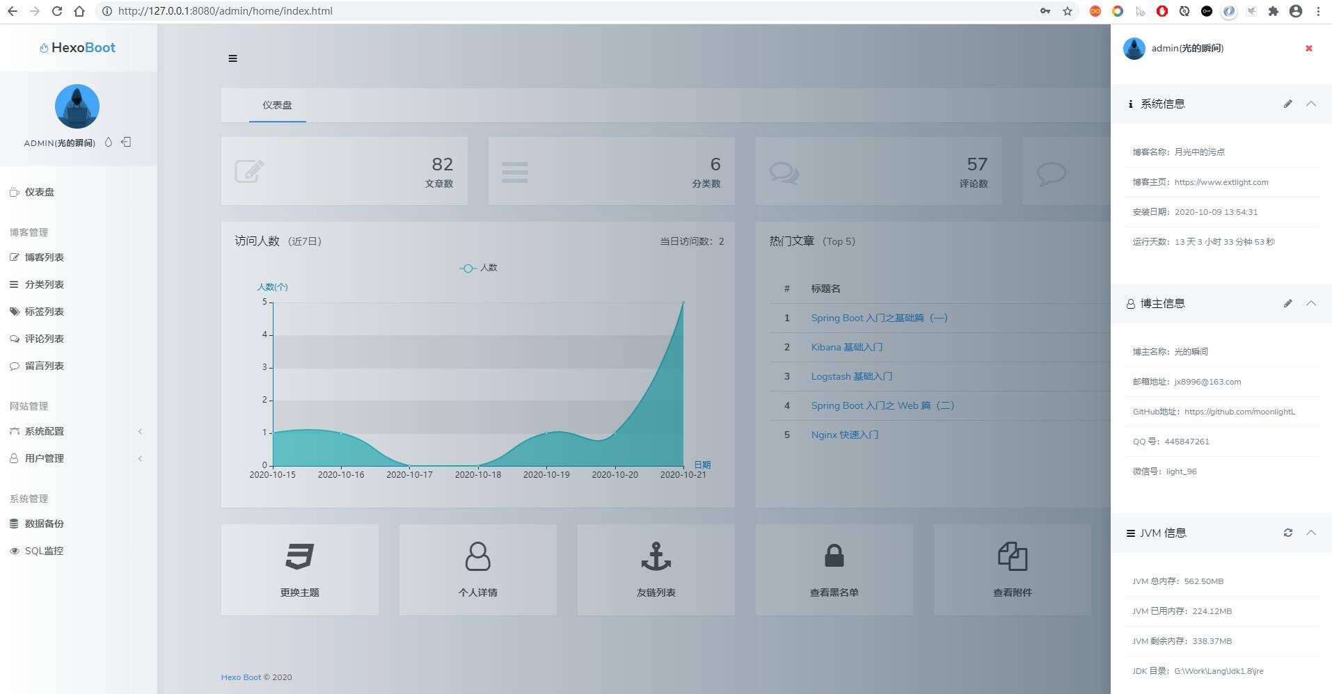 除了继承 ml-blog 中的功能(文章、分类、标签、全局参数)外,Hexo Boot 还扩展了一下功能
