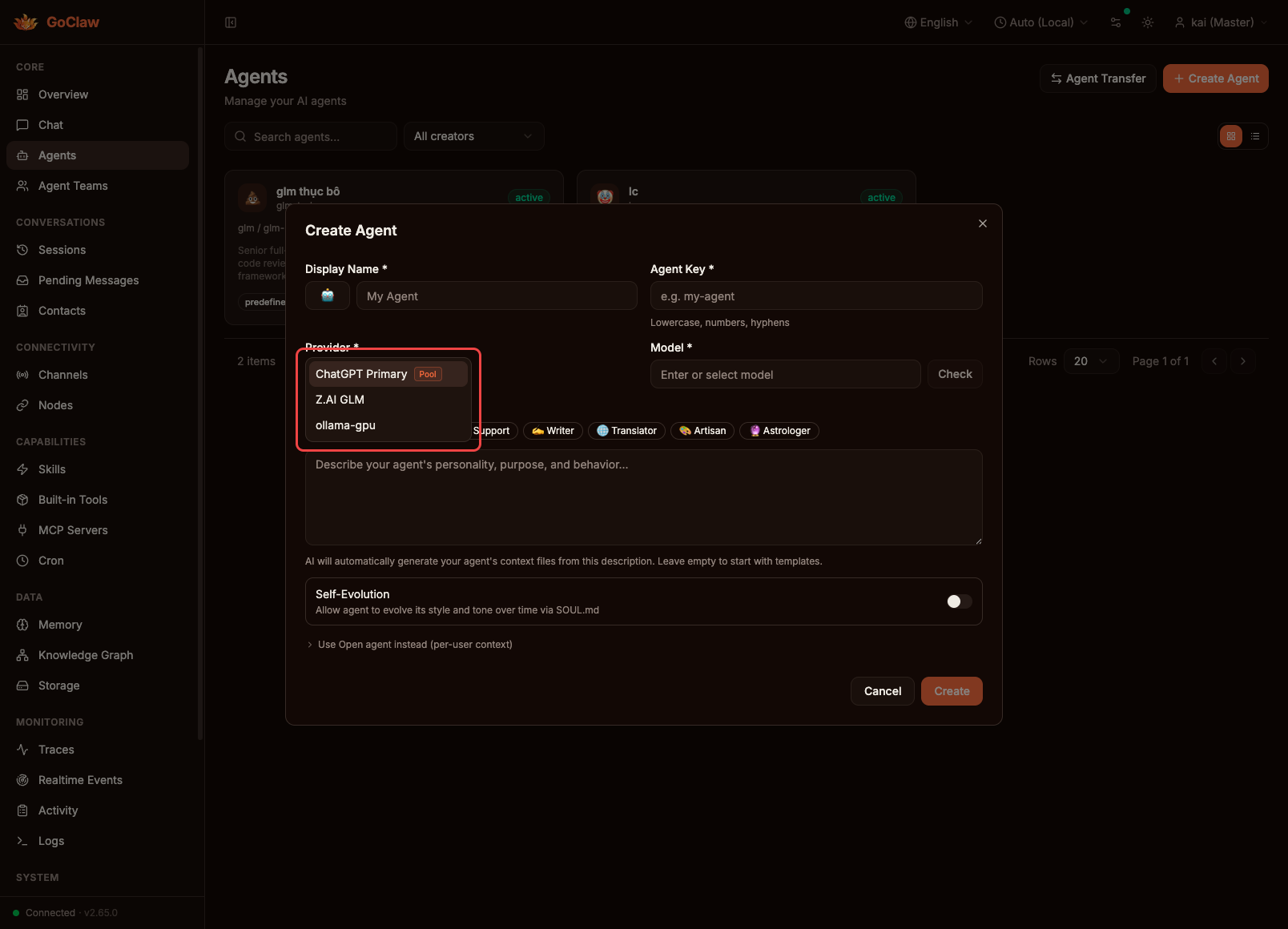 4. Agent Provider Selector — Pool Members Hidden + Badge