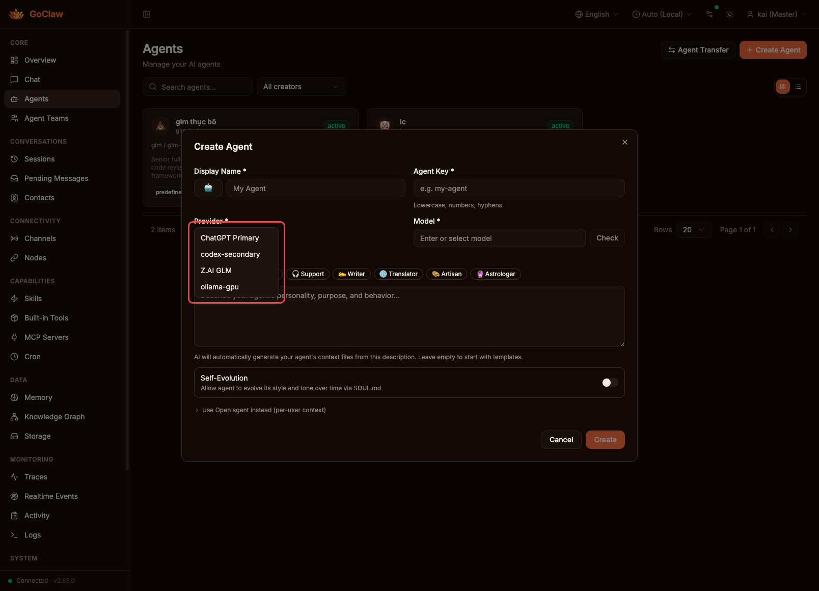 in provider-model-select and agent-identity-and-model-fields
