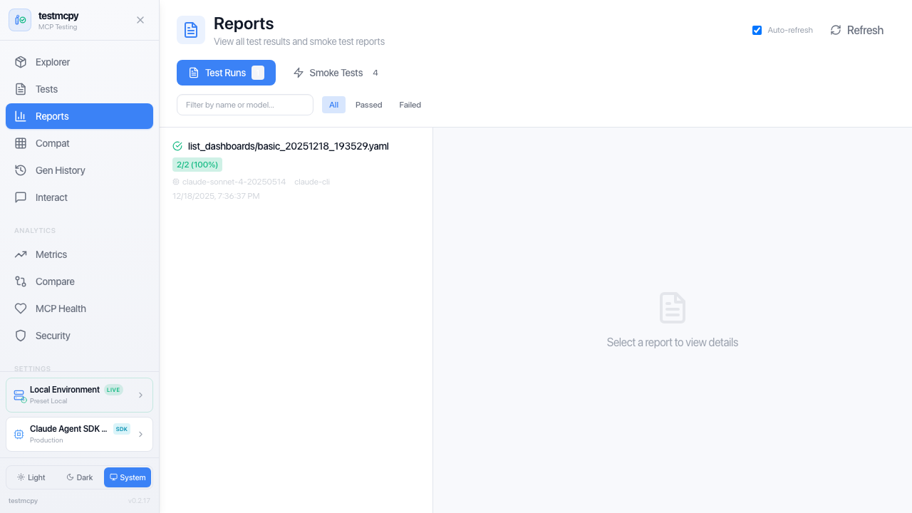 testmcpy dash --profile prod # Use specific MCP profileTUI Features: