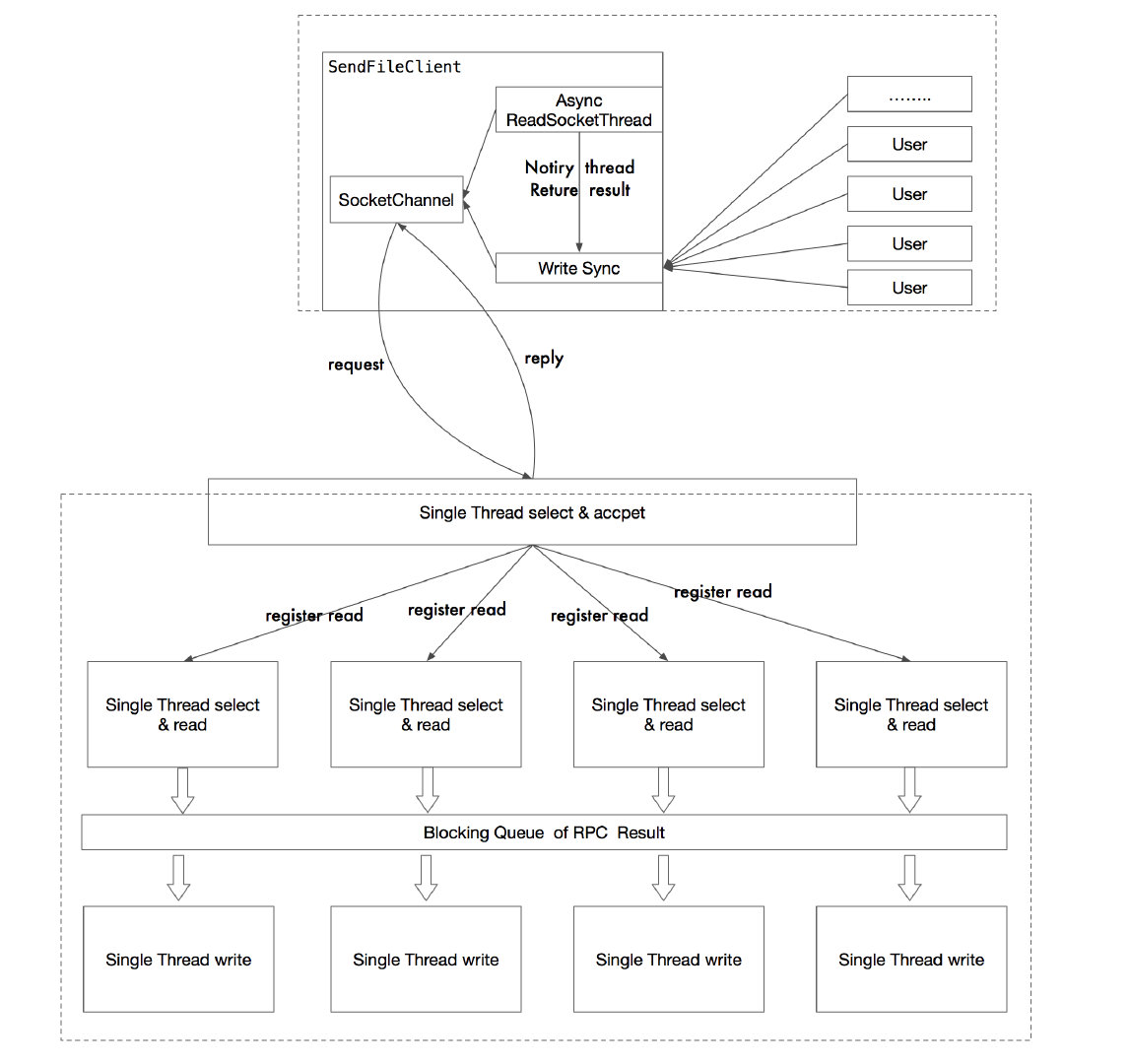 当结果发送到 Reply Queue 后,writer 组中的 写线程,则会从 Queue 中拉取回复包,然后将结果按照 RPC 协议,写回到 client socket 中。