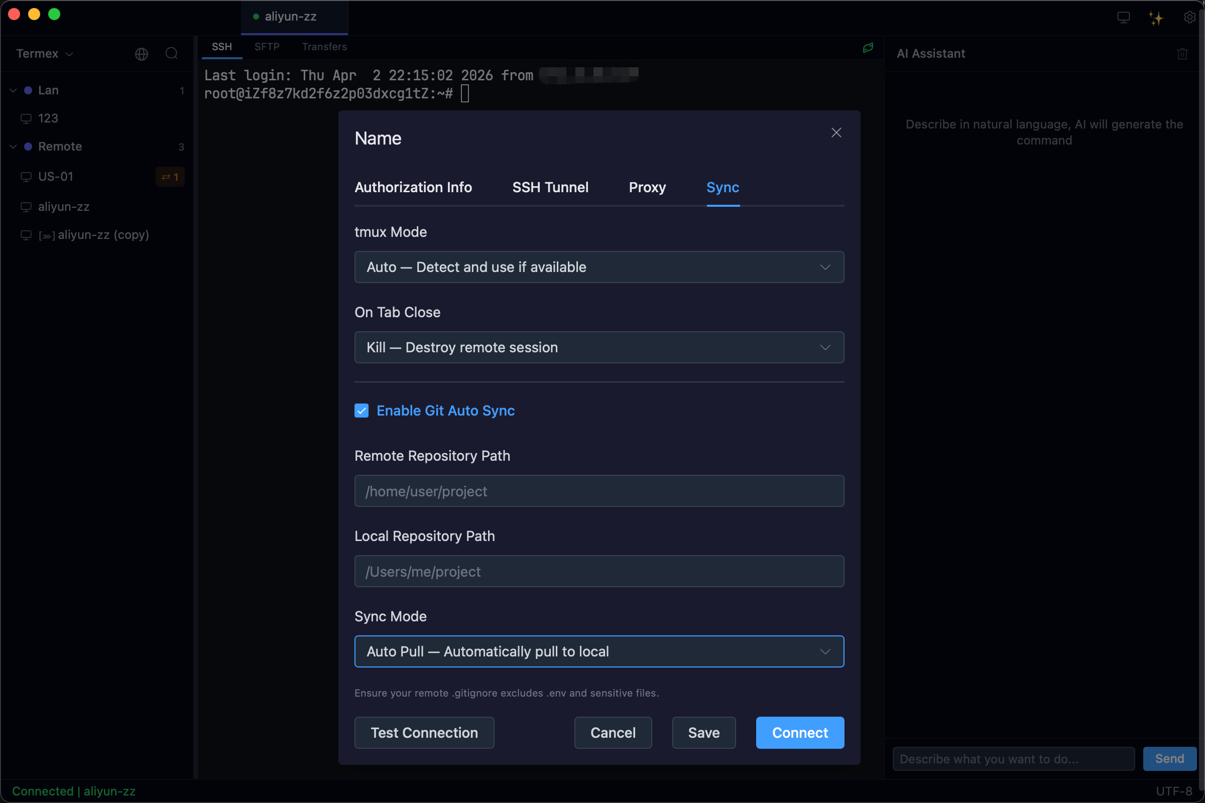 Termex turns remote servers into your private AI workspace — code, deploy,
